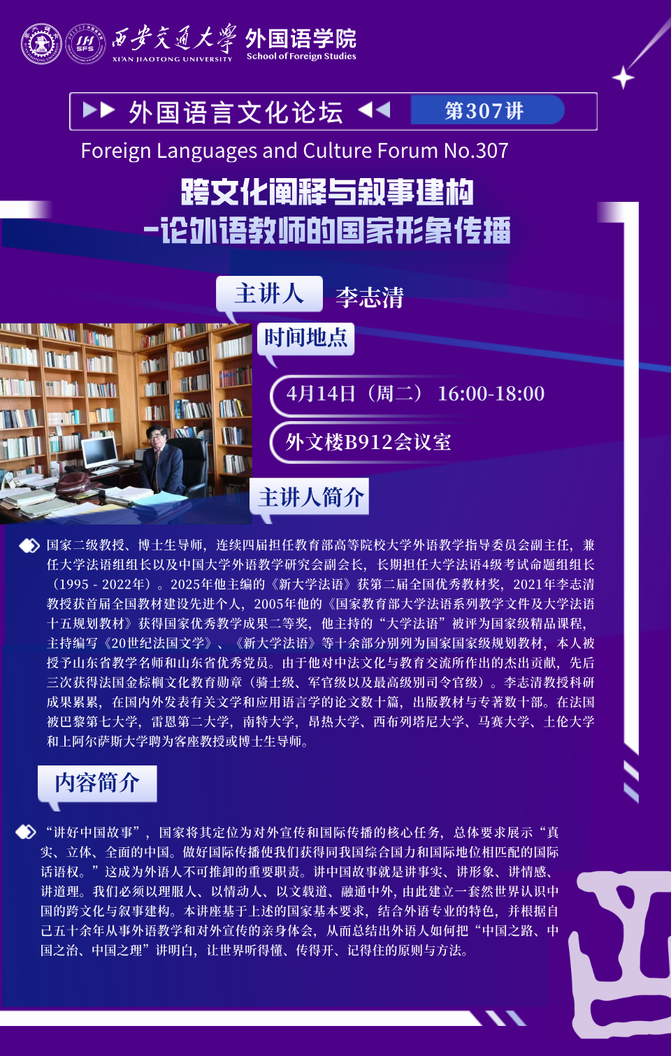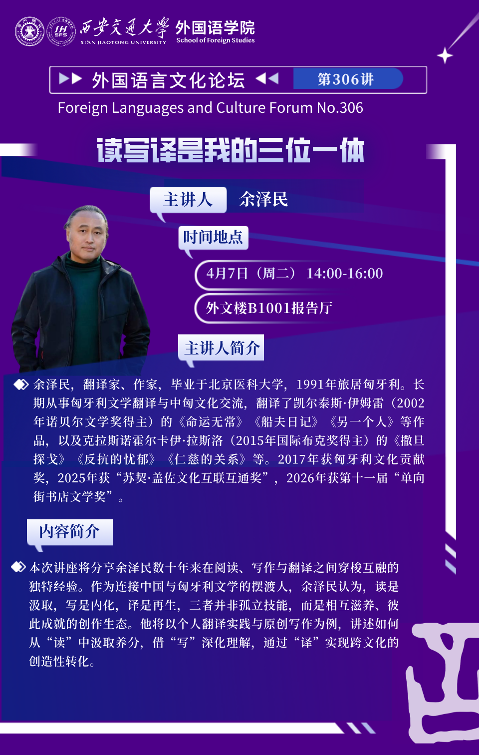 地址:陕西省西安市咸宁西路28号 邮编:710049学院联系电话:029-82663712 传真:029-82665683copyright © 2012 西安交通大学外国语学院 All Rights Reserved.