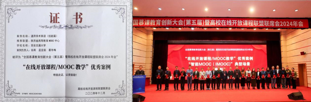 Hosted by the Joint Conference of Higher Education Online Open Course Alliances and 27 MOOC alliance partners under the guidance of the Ministry of Education, the conference aimed to showcase exemplary digital teaching resources and reforms, promote "X+MOOC" and "AI+teaching" models, and explore innovative practices for smart education and talent development. “General Academic English (Skills)” advanced through university-level selection, provincial evaluation, and rigorous national competition to secure this prestigious award.