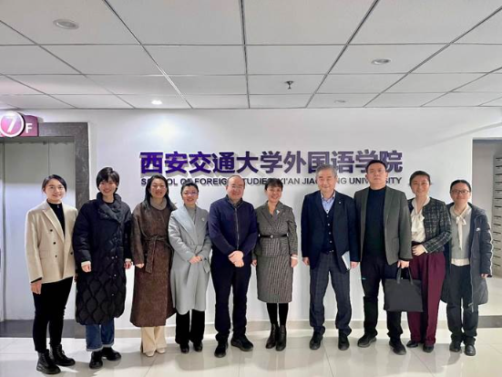 On January 10, 2025, Wang Dong, Director of Shaanxi International Communication Center (SICC), led a delegation including Zhang Lei (Director of the Department of International Exchanges), Liu Zheng (Deputy Director), and Kuang Yuanyuan (Deputy Director of the Department of Content) to visit SFS at XJTU. Talks were held between the delegation and the SFS side, including Chen Xiangjing, Dean of SFS; Zhang Chang'an, Secretary of the SFS Party Committee; Wang Hua, Vice Dean of SFS and Deputy Director of the Eurasian Research Center; Ji Le, Director of the MTI Education Center; and other faculty representatives. Discussions focused on establishing a "Joint Postgraduate Training Base", collaborative research on area studies, international communications, and in-depth exchanges.