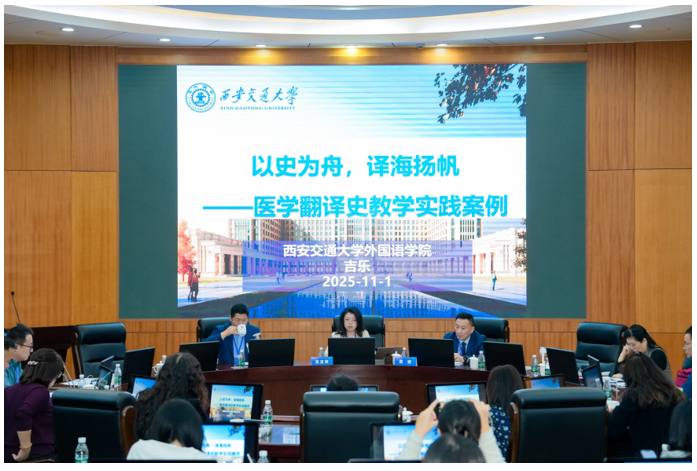本次大赛以“人工智能时代的翻译教学创新”为核心主题,分为笔译组、口译组、翻译技术组和翻译项目管理组四个组别,吸引了全国100多所高校的200多个优质教学案例参与角逐。评审标准涵盖案例实用性、创新性、教学适配性及行业对接度等多个维度,竞争尤为激烈。我校参赛团队深耕教学一线,聚焦翻译实践中的核心痛点,将交叉融合、AI技术应用、国际传播等前沿元素融入案例设计,形成了兼具理论深度与实践价值的教学成果。其中,笔译组案例(吉乐老师团队)精准对接医学行业需求,在借助翻译史案例提升综合素养方面展现出独特创新;口译组案例(许梅老师团队)则通过沉浸式实训、多场景模拟等教学模式,有效提升学生的临场应变与跨文化沟通能力。吉乐老师还受邀在笔译组平行论坛做了题为“以史为舟,译海扬帆——医学翻译史教学实践案例”的汇报展示,分享了我校在翻译人才培养方面的创新做法和实践成果,得到点评专家及参会代表的高度认可。