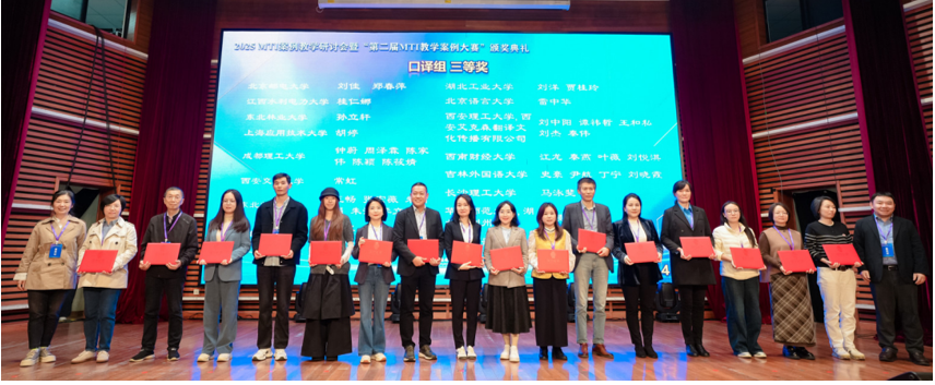 此次获奖是我校外国语学院MTI教育中心持续推进教学改革的重要成果。近年来,中心紧跟翻译行业数字化转型趋势,构建了“思政引领+技术赋能+交叉创新”三位一体的培养体系,通过校企合作共建实践基地、引入智能翻译教学平台、开设翻译技术专项课程等模式,不断提升教学质量与人才竞争力。未来,MTI教育中心将以此次获奖为契机,进一步深化教学改革,加强与全国高校及企业的交流合作,持续培养适应人工智能时代需求的复合型翻译人才,为翻译专业教育发展与国家语言服务能力建设贡献更大力量。