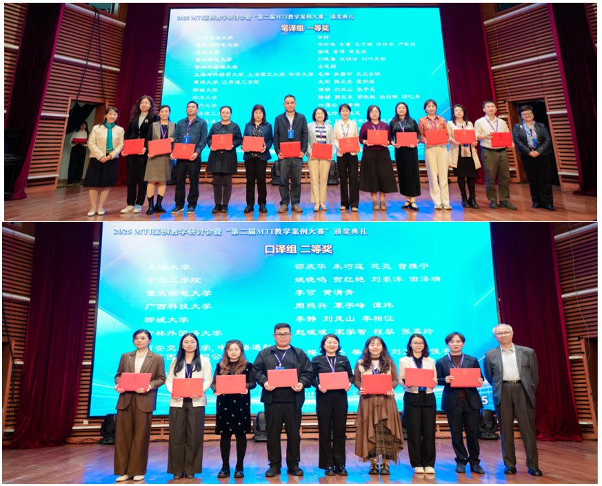 11月1日,由全国翻译专业学位研究生教育指导委员会指导、上海市科技翻译学会主办的2025 MTI案例教学研讨会暨“第二届MTI教学案例大赛”颁奖典礼在上海应用技术大学圆满落幕。全国翻译教育界同行及企业代表齐聚一堂,分享和交流最新研究与实践成果,为高端翻译人才培养探索创新路径。