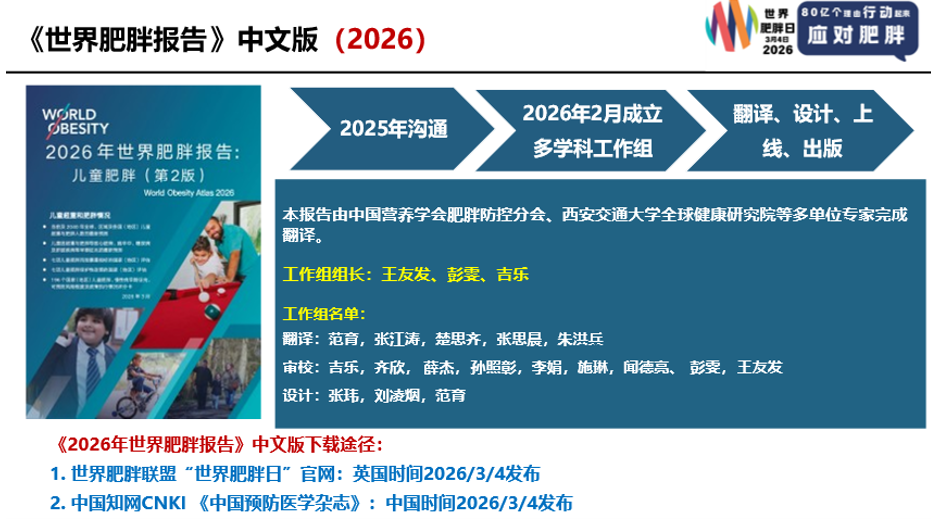 3月4日,在2026年“世界肥胖日”来临之际,《2026年世界肥胖报告》(以下简称《报告》)英文与中文版面向全球同步发布,报告聚焦全球儿童肥胖问题,呼吁各国加强合作,共同应对肥胖及相关慢性病的严峻挑战。西安交通大学外国语学院MTI师生参与了主要翻译工作。