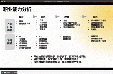 在职业能力培养层面,吕晔认为“技能是珠子,串珠成链”,她表示,自己的职业能力由日语基础、教育行业经验、养老行业积累、可视化传播技能、品牌营销能力等多个“珠子”组成。从入职必备的基础技能,到后续职业中习得的专业能力,各类技能的积累与融合,让自己能在跨领域发展中形成差异化优势。她还分享了不同职业阶段的核心感悟,认为第一份工作是职业习惯的塑形期,不仅能建立社会视角、积累原始人脉,更能培养时间管理、沟通汇报等底层能力。
