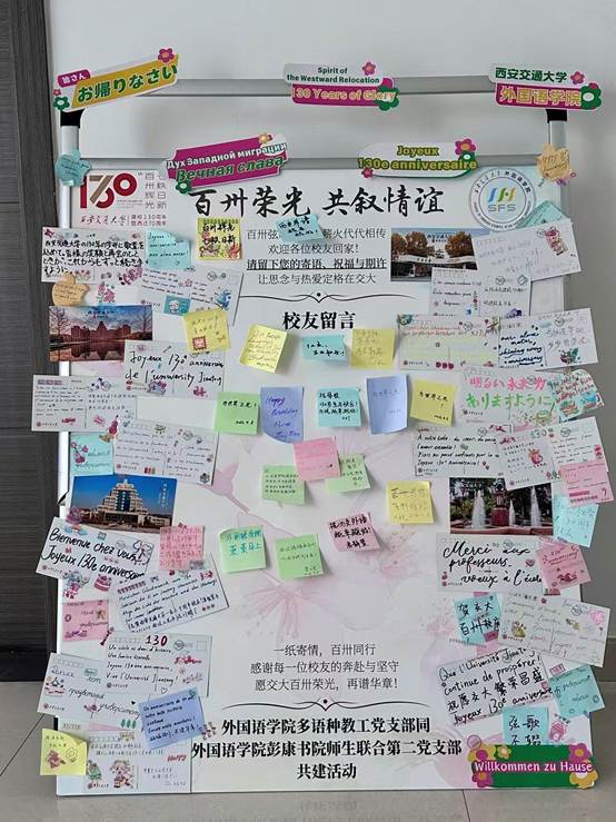 百卅辉光,七秩日新。此次共建活动作为学校校园文化建设系列活动之一,在教工党支部的组织引领下,师生协同策划、共同参与,立足支部特色,通过多语种创意实践,进一步增强了党支部凝聚力与归属感,深化了师生爱校荣校情怀。