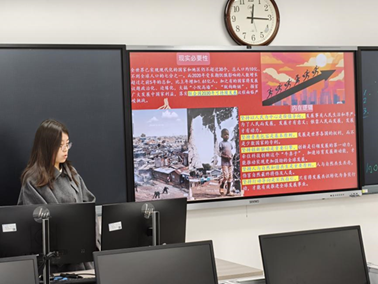 最后,沈思珵同学对本次会议所学内容进行英文总结。在介绍四大全球倡议时,她结合2024年世界互联网大会乌镇峰会全球发展倡议数字合作论坛、2025年第十二届北京香山论坛等国际实例,阐述中国在全球发展、安全、文明和治理方面的理念与实践。在二十届四中全会精神解读中,她围绕全会精神,重点解读全会对“十五五”规划的部署,并强调规划对推进中国式现代化的重要作用。在红岩精神分享板块,她讲述革命先烈的事迹和“狱中八条”的时代价值,展现红色精神的传承伟力。