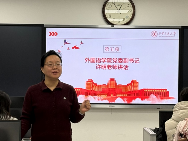 会议最后,党委副书记许明作总结讲话,为支部建设和学生发展提出具体要求,并寄予殷切期望。她强调,支部要紧扣“十五五”规划中与外语学科建设、学生成长发展紧密相关的内容,推动支部生活、理论学习与科研实践、专业发展深度融合;要创新活动形式,邀请专业教师分享科研经验,组织学生交流社会实践心得,真正做到理论联系实际,把支部各项工作抓实抓细、落到实处。同时,她勉励同学们主动提升沟通能力,既要积极对接老师,充分用好校内外优质资源,也要加强同学间的交流协作,学会科学处理各项事务、平衡学习与工作时间。恰逢元宵佳节,许明老师还向在场全体师生送上节日祝福,祝愿大家元宵节快乐,新学期事事进步、学有所成,在多沟通、多交流中凝聚奋进合力,共同成长。