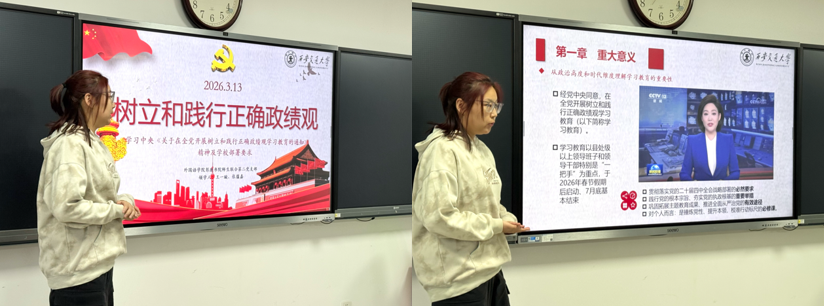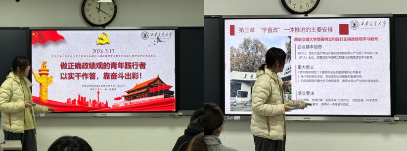3月13日,外国语学院彭康书院师生联合第二党支部于外文楼B603教室召开三月组织生活。会议紧扣“树立和践行正确政绩观”主题,深入学习中央《关于在全党开展树立和践行正确政绩观学习教育的通知》及学校部署要求,通过专题领学、交流研讨,旨在引导支部党员深刻理解正确政绩观的核心要义,明确青年学生的成长坐标与责任担当。本次会议由周婧儿同志主持,党支部全体党员共同参加。