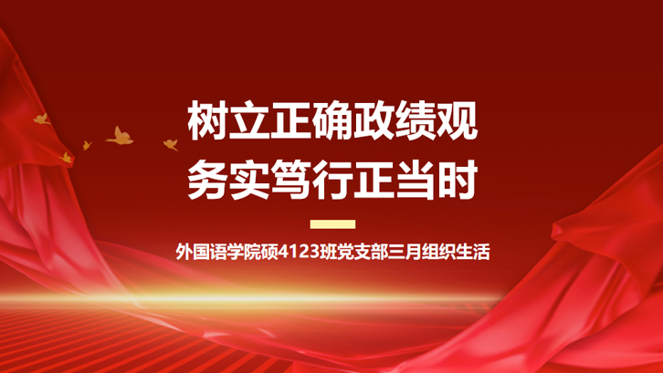 3月24日,外国语学院硕4123班党支部召开“树立正确政绩观,务实笃行正当时”主题组织生活,教育引导党员同志将正确政绩观转化为应对挑战的实际行动。支部全体党员参会,会议由党支部宣传委员兼组织委员刘紫杭同志主持。